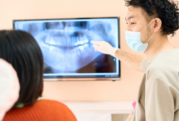 お口の健康維持するためには、患者さま自身が口内状況を理解している必要があります。特に問題がないと思っている方も、歯科健診でお口の中がどのような状態にあるのかを把握して、将来的にどうなっていたいのかを一緒に考えてみましょう。