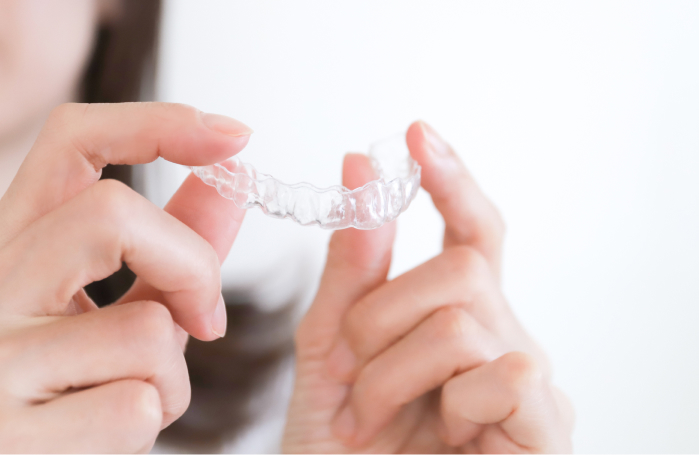 透明で目立ちにくいマウスピース型の矯正装置を使用し、日常生活の中でも違和感を少なく矯正を行います。