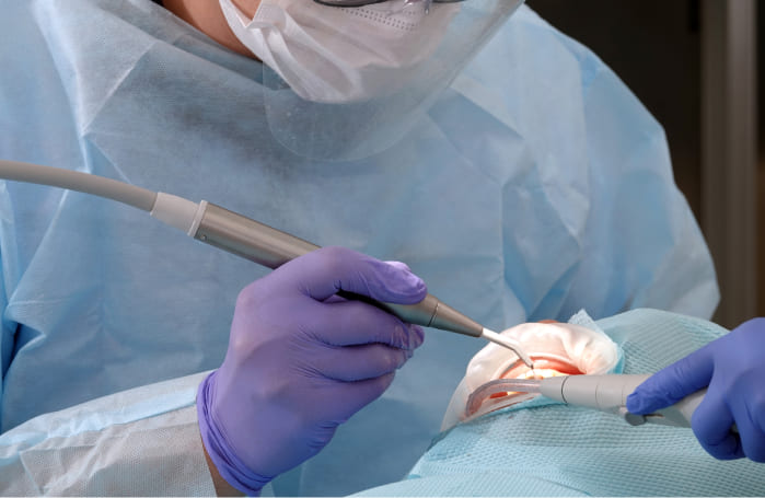 精密根管治療は、虫歯や過去の治療で歯の内部(根管)に細菌感染が起きた場合に行う、より高度で丁寧な治療です。根管の内部は非常に細く複雑な構造であるため、マイクロスコープや拡大鏡を使用し、肉眼では見えない部分までしっかり確認しながら処置を進めます。